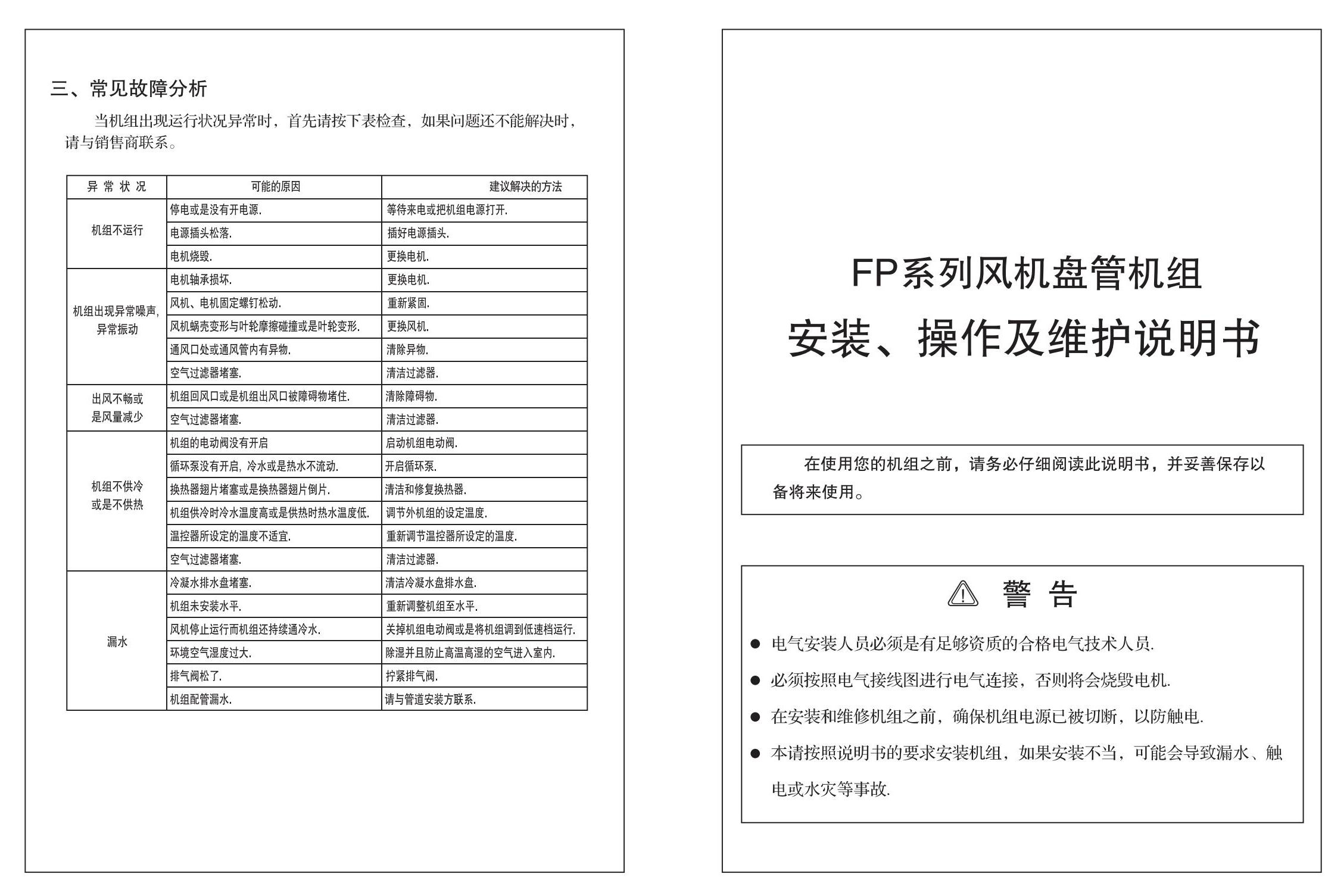 臥式暗裝風機盤管使用說明書
