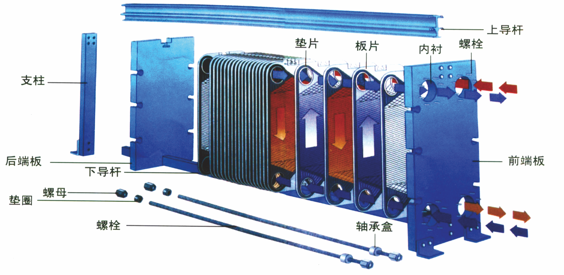 1. 核心性能與特點高傳熱效率:板片上的波紋設計使流體在低流速下也能產生強烈湍流,傳熱系數通常是管殼式換熱器的 3-5 倍。