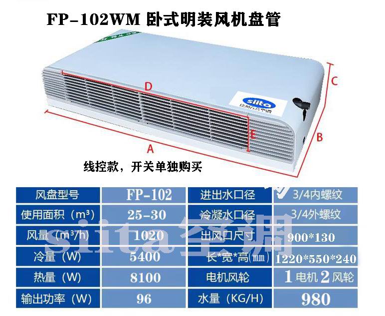FP-102WM 是中央空調中適配中大面積空間的臥式明裝風機盤管,額外風量 1020m3/h,主打大風量、高換熱效率,適配 25-30㎡空間,無需吊頂可直接吊裝,機身規劃統籌實用性與裝飾適配性,是住所大空間、中小型工作 / 商業區域的主力選型,統籌溫控精準度與裝置方便性。